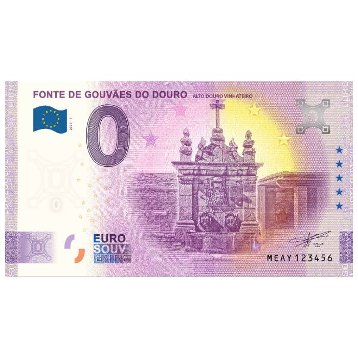 Euro Souvenir Fonte de Gouvães do Douro - Alto Douro Vinhateiro MEAY 2023-1 pintado à mão. Manuel Teixeira, o artista responsável pelo lindíssimo trabalho, é de Amarante, Portugal, e colabora com a NumisVilaReal desde 2020 e faz uma cuidadosa pesquisa antes de aplicar a sua cosmovisão ao trabalho em causa. As notas pintadas são uma excelente forma de apoiar o trabalho de um artista, especialmente num momento tão difícil como este...