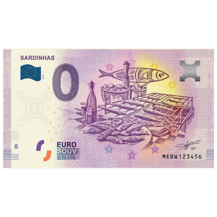 Esta nota apresenta duas curiosidades em simultâneo: um selo de 0€ com a criatividade da nota obliterado com o carimbo que o pintor Thierry Mordant, autor do desenho da nota, usou para marcar algumas das suas produções artísticas na Atlantic Alpen Adria, em Viana do Castelo, entre os dias 1 e 6 de outubro de 2019.