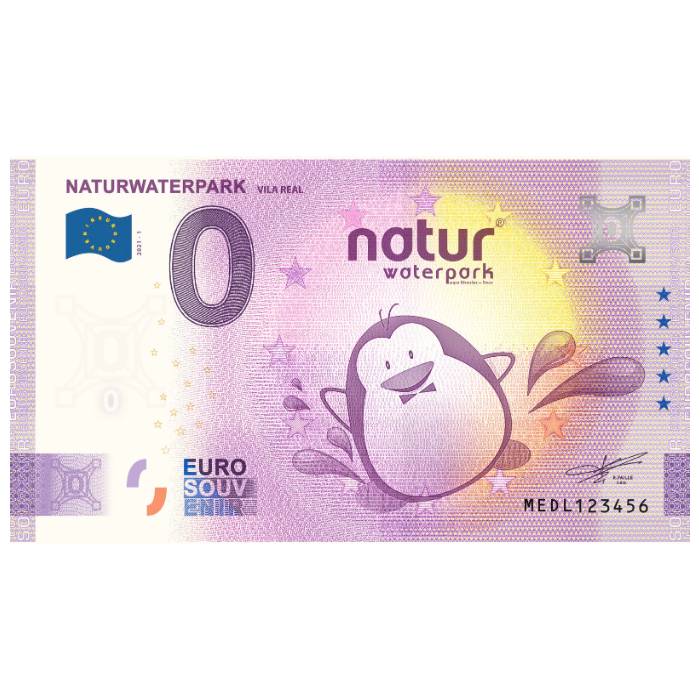 A nota, que estabeleceu a parceria entre a NumisVilaReal e o NaturWaterPark, surge-nos com 25 selos (correio nacional 20g) MeuSelo que apresentam o logotipo do maior parque de diversões do norte de Portugal. São 25 notas (1026-1050) e os selos foram carimbados em Vila Real com o carimbo do dia 10 de julho 2021 (Dia da Nota Euro Souvenir, evento em colaboração com a Euro Souvenir Portugal).