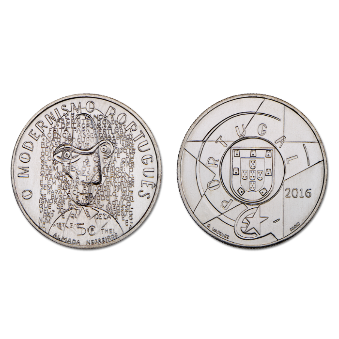 A Série Europa inicia um novo ciclo, alusivo às «Idades da Europa», refletindo os movimentos artísticos europeus: o Gótico, o Renascimento, o Barroco, a Idade do Ferro e do Vidro e o Modernismo, tema escolhido para este ano. A moeda produzida pela INCM foi concebida pelo escultor Rui Vasquez a partir de um autorretrato de Almada Negreiros, um dos precursores do chamado Modernismo Português, que acompanhou a vanguarda das letras e das artes europeias no início do século XX, em rotura com o passado e com todas as marcas de cariz tradicional ou clássico na cultura e na sociedade.
